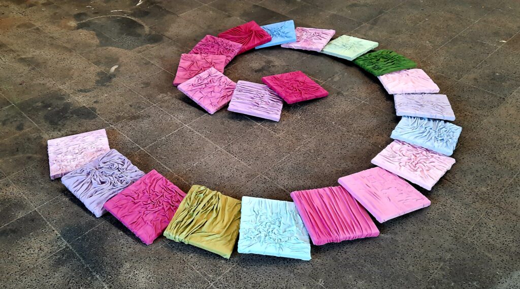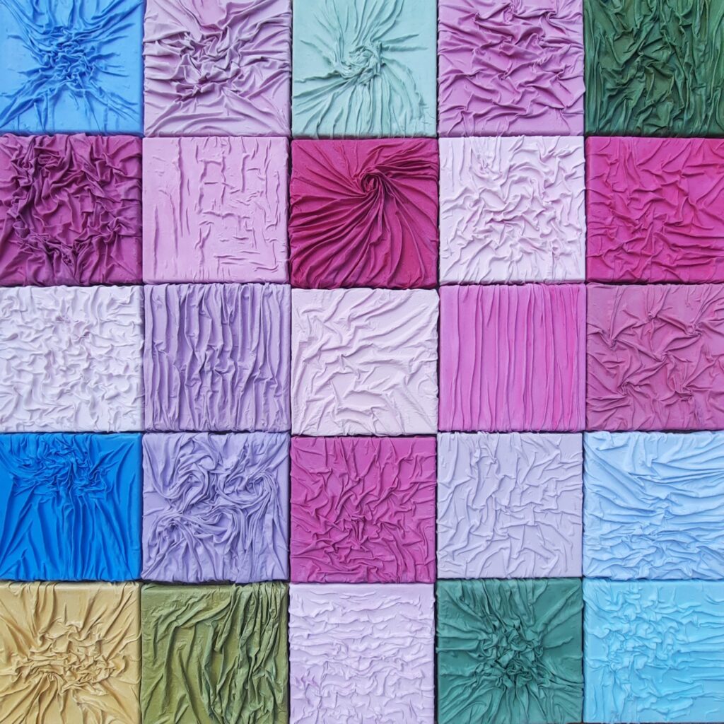 DLOUHÁ CESTA, kombinovaná technika, textil na plátně, akryl, instalace, 2024