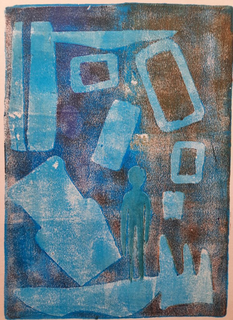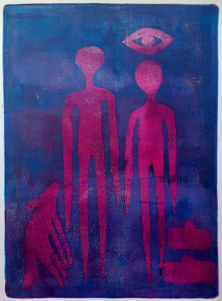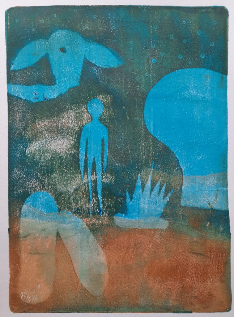 SNADNO USEDNOUT, NESNADNO VSTÁT. Rok 2025 byl mimo jiné ve znamení tisku, vzniklo 12 ilustrací pro knihu Rege Kienasta v rámci projektu Try Walking In My Shoes – My May Art, projekt česko-německo-kanadské spolupráce Mirka a Terky Korandových. Chemnitz EHMK 2025. Galerie město.